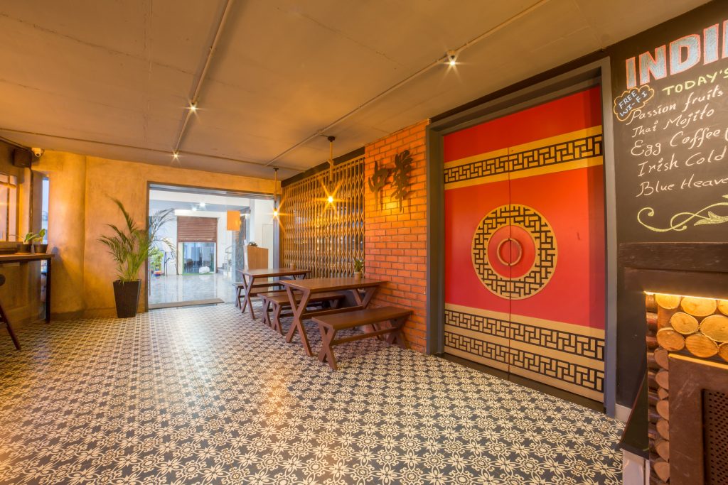 Chung Wah was rendered with a rustic theme with exposed concrete finishes, metal drop lights and wooden clad elements. Graphic backlit elements provide a subtle recall factor for the cuisine without indulging in cliched typical elements. Santrupti on the other hand is designed with an eclectic Indian theme. The dominant colour pallette of the spaces is curated in blue, resonating with the plaster finished walls of the blue city of Jodhpur. A coffee shop occupies the entrance foyer overlooking the main road. This was added as a casual intermediate space that brings the two restaurants together, and converts the space into a day-long food joint.